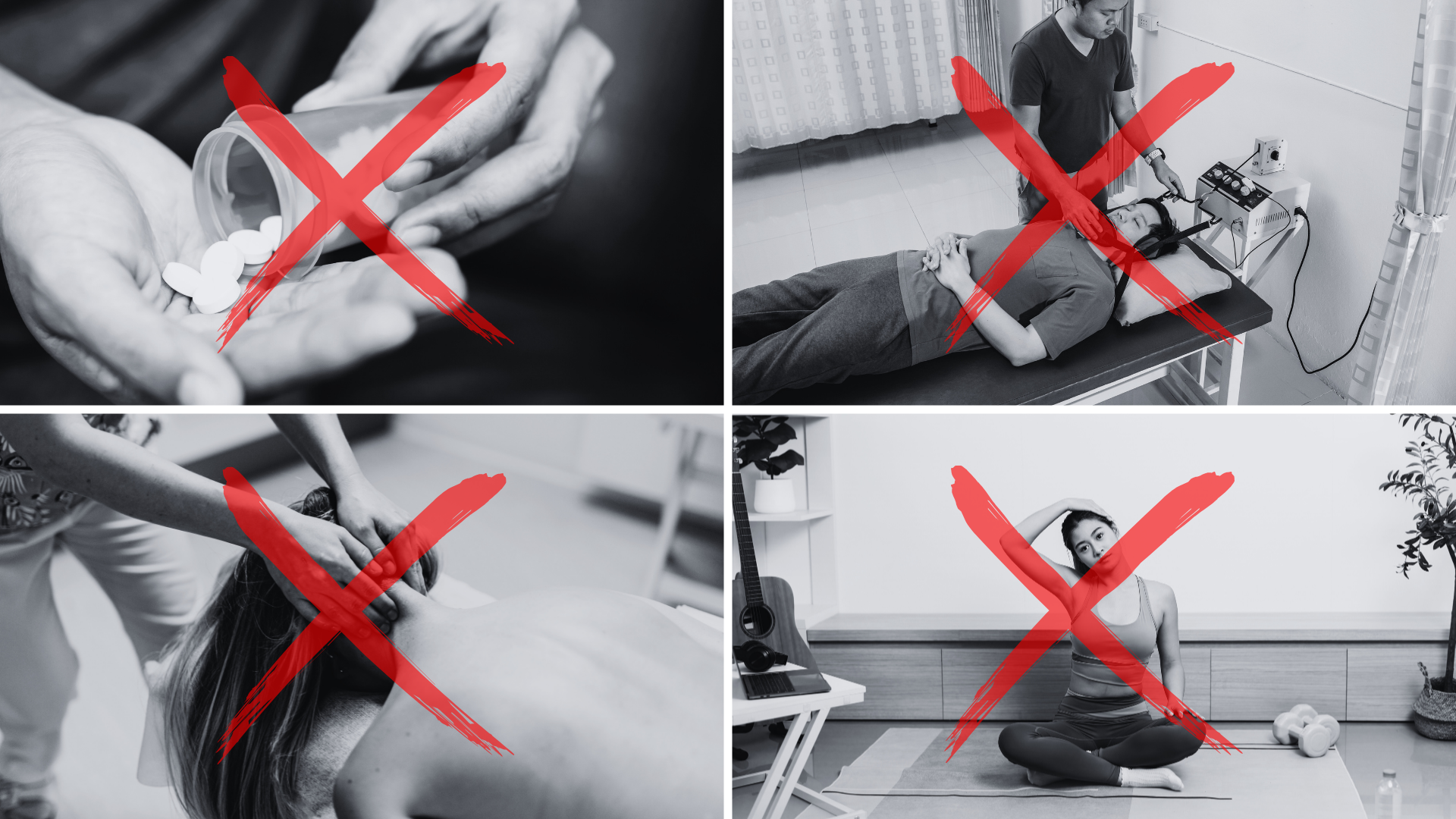- Acupuncture, massage, CBD, yoga (temporary Band-Aids)